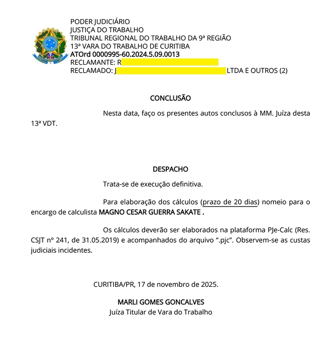 Sim. Todos os nossos cálculos são elaborados ou convertidos para o PJe-Calc (sistema oficial da Justiça do Trabalho), garantindo compatibilidade total com a vara de origem e facilitando a conferência pela contadoria do juízo.